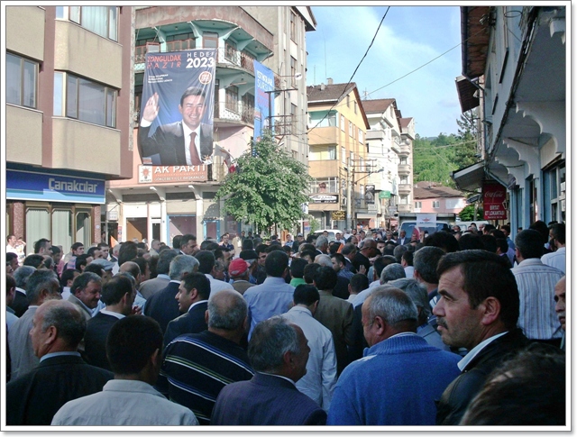 Gökçebey’de AK Parti’nin mitinglerinin zayıf geçmesine karşın seçim sonrası düzenlenen etkinliğe mitinglerin aksine çok sayıda kişi katıldı.
