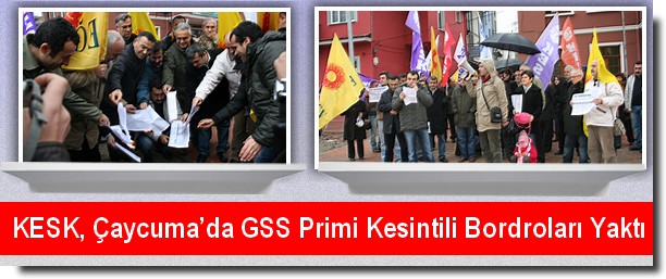 Dağıtılan bordolardan 1 Ekim 2008’den sonra göreve başlayan öğretmenin maaşından 73,16 liranın kendisinden kesildiği dikkati çekti. Dağıtılan iki bordroyu karşılaştıran Eğitim Sen Çaycuma Temsilcisi İsmet Akyol, “2006 yılından bu yana yaptığımız eylem ve etkinliklerde temel hak olan, sosyal devlet anlayışında ücretsiz olması gereken sağlığın GSS primi ve katkı paylarıyla paralı hale geleceğini anlatmaya çalıştık. 1 Ekim 2008 tarihinden sonra memur olanların GSS priminin yüzde 7’sini devlet karşılarken, yüzde 5’ininde bordroda görüldüğü gibi çalışanların maaşından kesiliyor. 1 Ekim 2008’den önce göreve başlayanların devlet memurlarının GSS primleri en fazla üç yıl boyunca devlet tarafından karşılanmaya devam edecek. Ancak en fazla üç yıl içinde tüm kamu emekçilerinin maaşından da 1 Ekim 2008’den sonra göreve başlayanlarda olduğu gibi yüzde 5 oranında GSS primi kesilecek. Acı ama gerçek, yıllardır söylediklerimiz, AKP’nin ‘ustalık’ döneminde bir bir yaşama geçiriliyor. Şimdi parasız sağlık hakkı için mücadeleyi daha da büyütme zamanıdır” dedi.