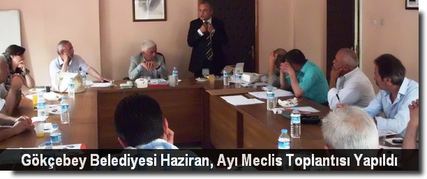 Gökçebey Belediye Meclisi’nin Haziran Ayı Meclis Toplantısı yapıldı. Haziran Ayı toplantısı Belediye Meclis Salonu’nda Belediye Başkanı Zeki Kılınçarslan başkanlığında yapıldı. Haziran ayı olağan Meclis Toplantısı, 06.06.2012 Çarşamba günü saat 10.30 da Dokuz Belediye Meclisi Üyesi Necmi Pazar, Ender Aydemir, Sibel Birben, Hüseyin Yaylı, Ferhat Öztürk, Mahir Bostancı, İsmail Arat, Mehmet Acar, Sadi Uyar’ın katılımıyla başladı.