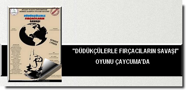 Aziz NESİN'in yazdığı, Acar ÇAKMAKÇILAR'ın yönettiği "DÜDÜKÇÜLERLE FIRÇACILARIN SAVAŞI" adlı komedi; 17 Mayıs 2013 Cuma günü saat 20.00'de Çaycuma Kültür ve Sanat Merkezinde ÜCRETSİZ olarak sahnelenecek.