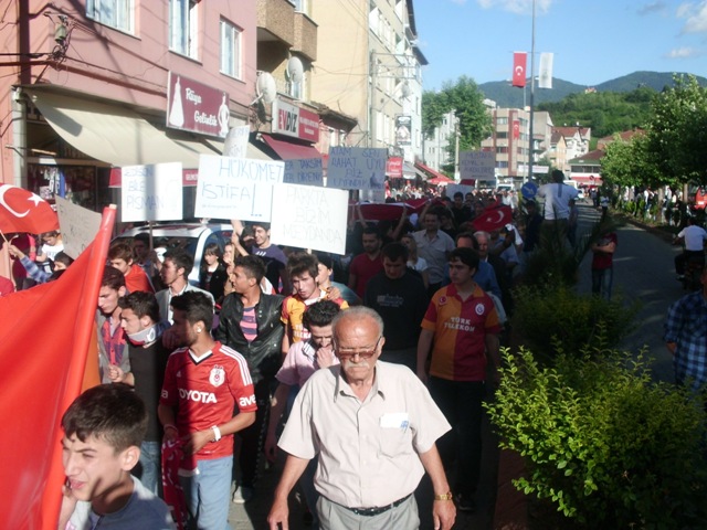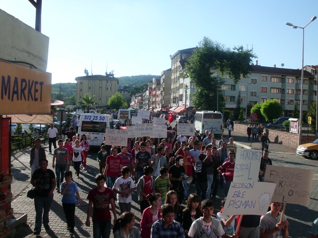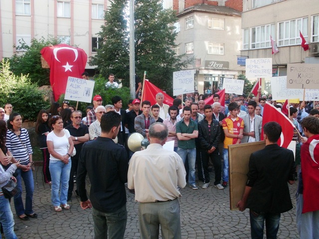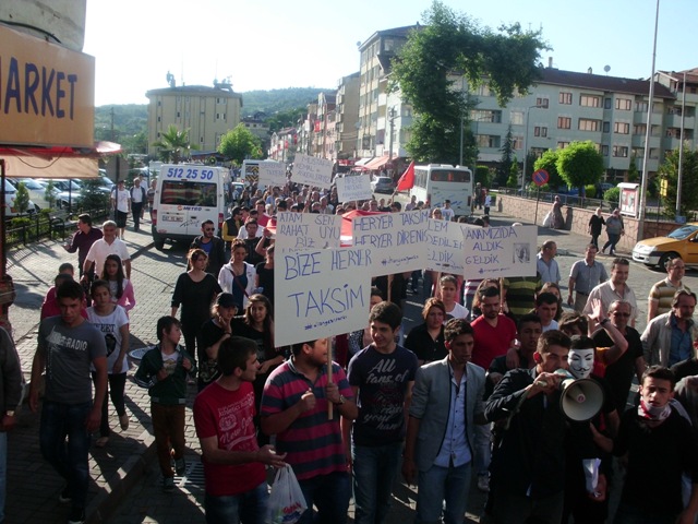 3 Haziran Pazartesi günü saat 18.00’de Gökçebey Cumhuriyet Alanı’nda bir araya gelen vatandaşlar İstanbul Taksim’de yaşanan olayları protesto etti. Saygı duruşu ve istiklal Marşı'nın okunmasının ardından, ADD Gökçebey Şube Başkanı Hasan Oktay bir konuşma yaptı.