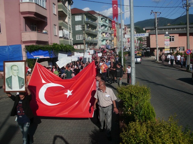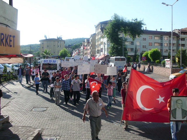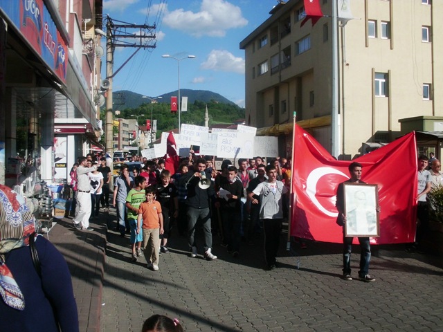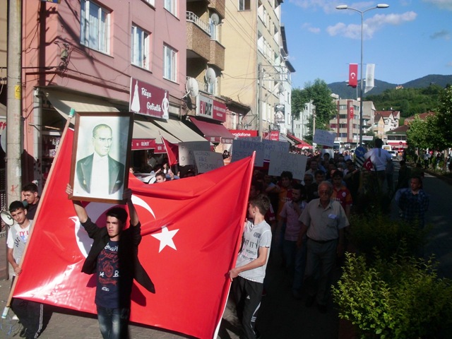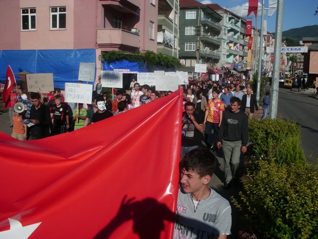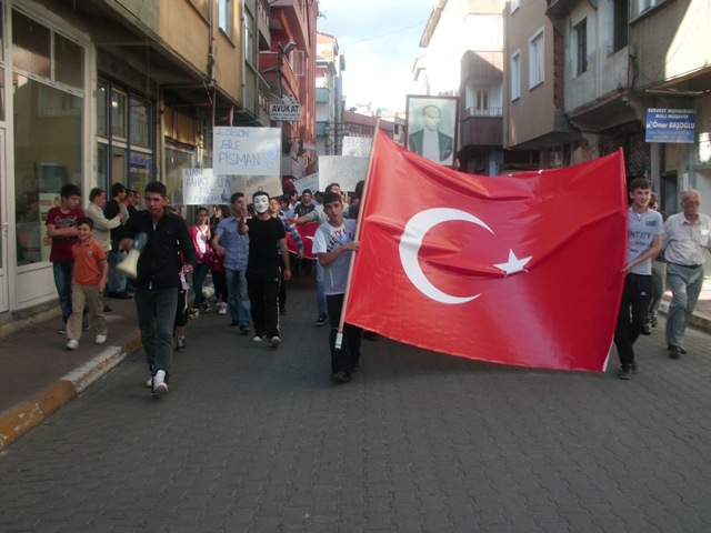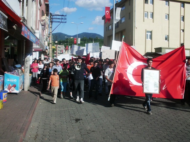 Atatürkçü Düşünce Derneği Gökçebey Şube Başkanlığı ve Gökçebeyli Gençlerin çağrısıyla bir araya gelen vatandaşlar sloganlarla İstanbul Taksim Gezi Parkında yaşanan olayları protesto etti.