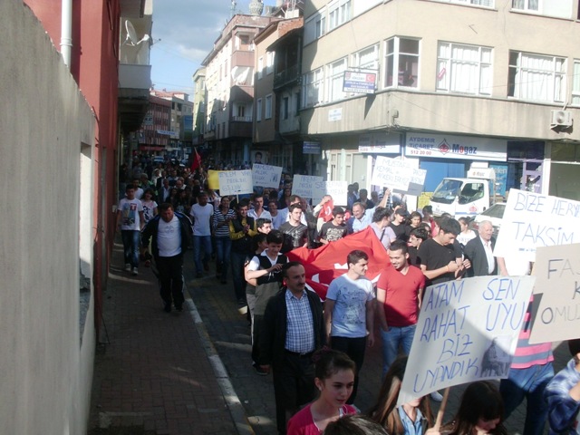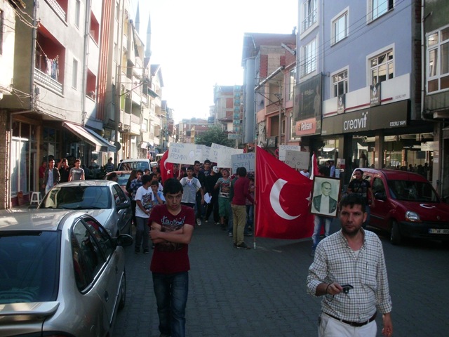 Cumhuriyet Meydanı’nı tamamen dolduran vatandaşlar Cumhuriyet meydanından ilçe emniyet amirliği binasına ve oradan ismetpaşa caddesine kadar yürüyüş yaptı.