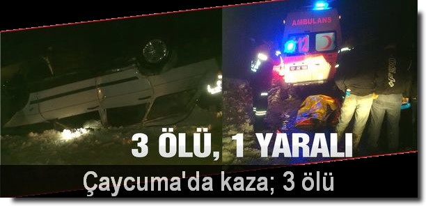 Çaycuma’ya bağlı Perşembe beldesinde Muherremşah köyünden Helvacılar köyüne gitmekte olan Sezai Mazak (35) yönetimindeki Reno Stejın marka otomobil saat 19:00 sularında Baloğlu mevkiinde kar kaplı yolda kayarak dereye uçtu. Araç şoförü Sezai Mazak (35), Fatma Mazak (25) ve anneleri Velime Mazak (60) olay yerinde yaşamını yitirdi. Araçta bulunan Yasin Bükrübaş (23) ise ağır yaralandı. Olay yerine gelen Çaycuma İtfaiyesi araçtan yaralı ve cenazeleri çıkardı.