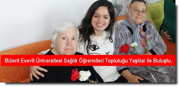 Bülent Ecevit Üniversitesi Sağlık Öğrencileri Topluluğu ülkemizde her yıl 18-24 Mart tarihleri arasında kutlanan Yaşlılar Haftası nedeniyle Zonguldak İli Ereğli İlçesi’nde bulunan Huzurevine topluluğun Akademik danışmanı Doç. Dr. Sevim Çelik eşliğinde ziyaret gerçekleştirdi. Bu etkinlik sırasında yaşlılarımızın sağlık sorunları ile ilgilenilerek tansiyon ve nabız ölçümleri, öz bakım uygulamaları yapıldı, topluluk öğrencileri tarafından mini konser verildi. Yapılan sohbetler sırasında özellikle genç arkadaşlarla bir arada olmaktan duydukları memnuniyetleri dile getiren yaşlılarımız, yaşama sıkı sıkıya bağlı olduklarını kanıtlarcasına kendi yazdıkları şiirlerden ve önemli şairlerimizin şiirlerinden örnekler sundular. Etkinlik birlikte söylenilen şarkıların ardından birlikte güzel projelerde buluşma dilekleriyle sona erdi.