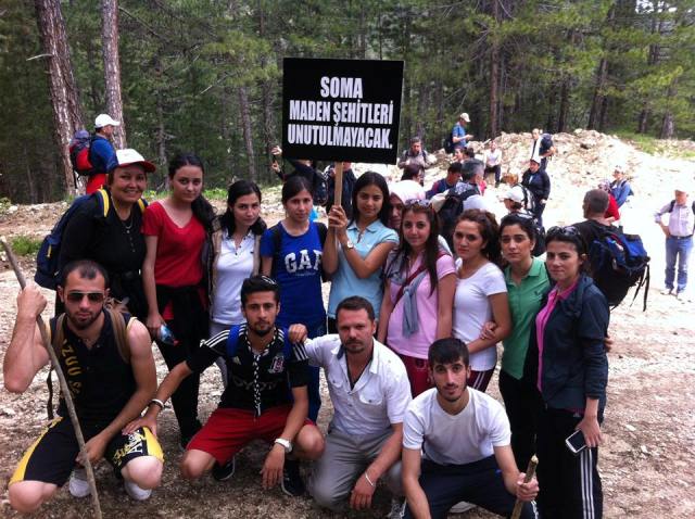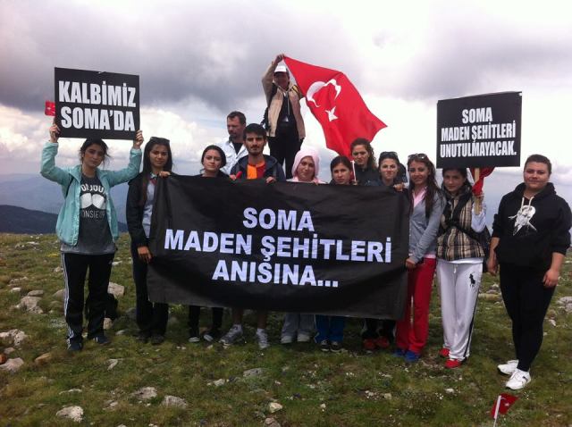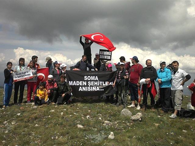 Üç saat süren zorlu tırmanış sonunda 2000 Metre zirveye ulaşan ekip Soma'da kaybettiğimiz maden işçilerini andılar. Açılış konuşmasını Pusula Doğa ve Su Sporları kulübünün Kurucu başkanının üstlendiği anma töreni 1 dakikalık saygı duruşu ile son buldu. İnişin Üç buçuk saat sürdüğü zorlu doğa şartları karşısında ekip parkuru başarı ile tamamladı.