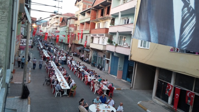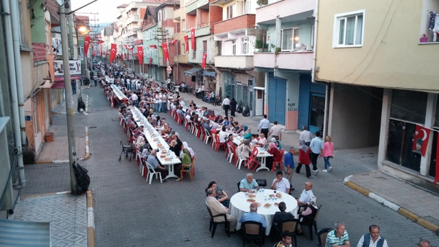 Çarşı mahallesi muhtarı Aydın Kayabaşı, Çay mahallesi muhtarı Yüksel Kahveci , Esnaf odası başkanı Ali Çetin birlikte konukları caddenin girişinde karşıladı. İlçede yoğun katılımın olduğu iftar yemeğine ilgi büyük oldu. Vatandaşlar ezanın okunmasıyla birlikte oruçlarını açtı.