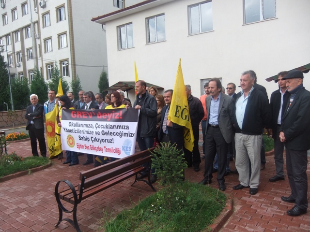Eğitim Sen Gökçebey Temsilcisi Servet Büyükkol yaptığı basın açıklamasında “Bugün Niçin GREV’deyiz” diyerek basın açıklamasında aşağıdaki konulara değindi;