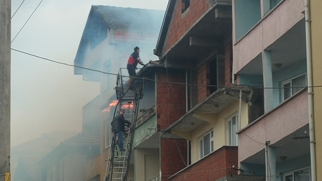 Gökçebey ilçesi çay mahallesi İsmetpaşa caddesi üzerinde bulunan 4 katlı binanın çatı katında meydana gelen yangın paniğe neden oldu.