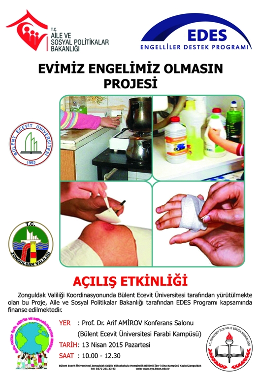Zonguldak Valiliği Koordinasyonunda Bülent Ecevit Üniversitesi tarafından yürütülmekte olan ve Aile Sosyal Politikalar Bakanlığı tarafından EDES Programı kapsamında finanse edilen “Evimiz Engelimiz Olmasın” Projesi’nin açılış etkinliği 13 Nisan 2015 Pazartesi saat 10.00-12.30 arasında Bülent Ecevit Farabi Kampüsü’nde bulunan Prof. Dr. Arif Amirov Konferans Salonu’nda gerçekleştirilecektir.