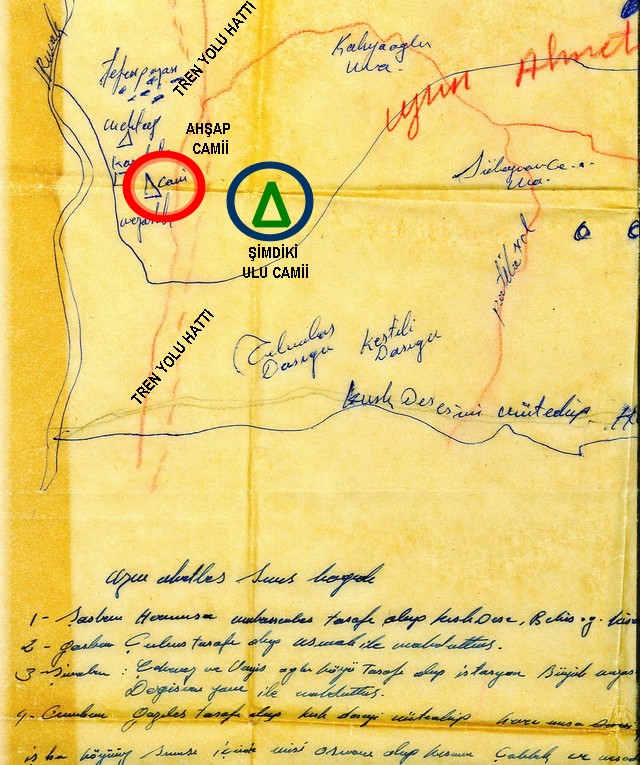 Gökçebey ilçesi Çay Mahallesinde bulunan Ulu Camii’nin giriş kapısının üstünde Hicri. 1229 Miladi 1813 tarihli bir kitabe var. Yaşlılar bu kitabenin şimdiki şehir mezarlığının olduğu yerdeki Ahşap Camiden alınıp buraya takıldığını söyler. Merhum (1926-2013) İsmail Kazlı camii ile ilgili olarak “Mezarlığın ortasında, taş temel üzerine inşa edilmiş ahşap camii; iki katlı, ahşap ve bir de minaresi vardı “der. Kitabeye göre camiinin yapılış yılı miladi 1813 ve yine kitabeye göre, camiyi yaptıran “Halil Ağa ibn Ali Ağa”; yani Ali ağa oğlu Halil ağa ( Kılınçarslan sülalesi). Yine kitabeden anlaşıldığına göre Ahşap camii Halil ağa yaptırmış (1813).