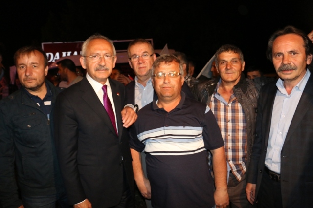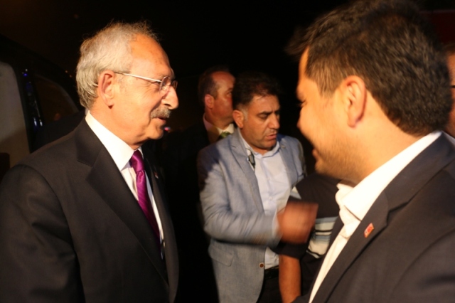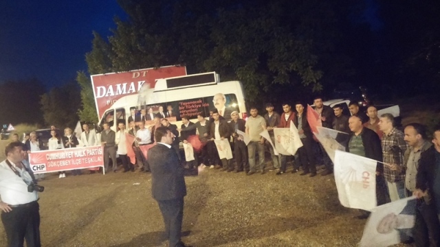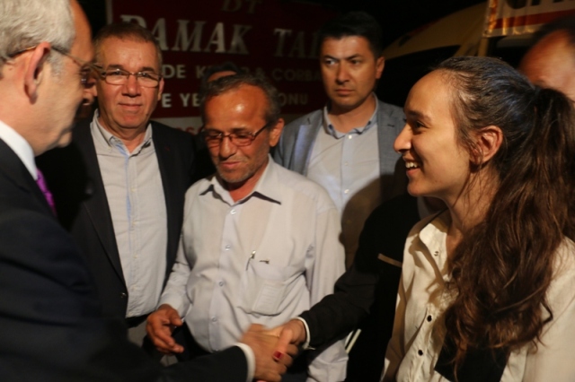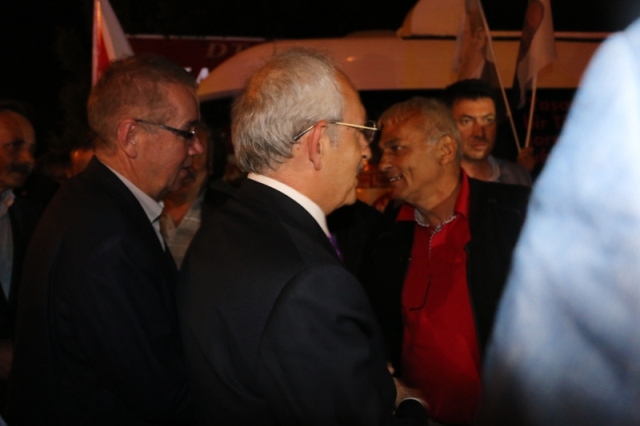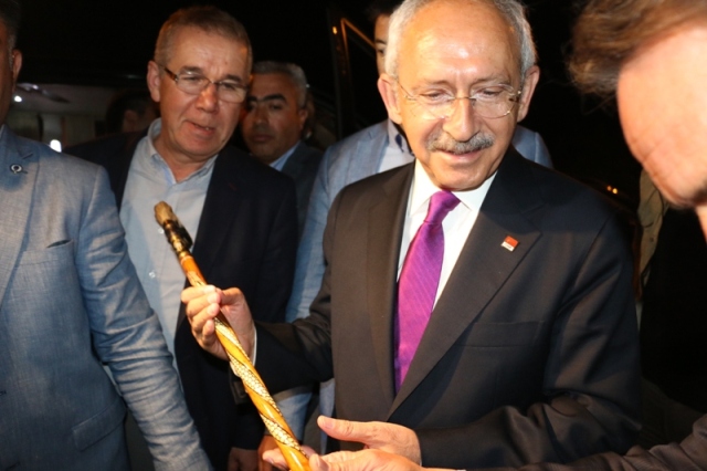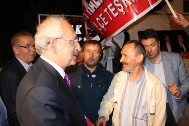 Parti Otobüsünden inerek partililerle tek tek tokalaşan Kılıçdaroğlu, İlçe başkanı Cem Oktay’ı tebrik ederek, başarılı çalışmalarının devamını diledi . İlçe başkanı Cem Oktay ise Genel Başkan Sayın Kılıçdaroğlu’nu partisinin ilçedeki seçim çalışmaları hakkında bilgi verdi ve yöremizin simgesi Baston hediye etti.