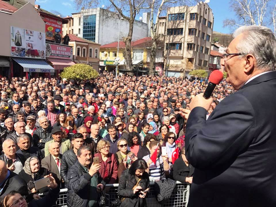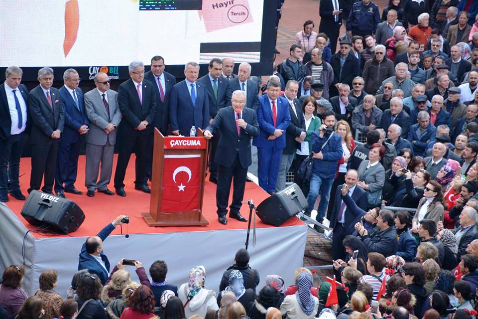 16 Nisan 2017 günü yapılacak olan referandum öncesinde 18 maddelik anayasa değişikliğine “Hayır” oyu için destek isteyen Baykal, Çaycuma çarşı meydanında halka hitap etti.