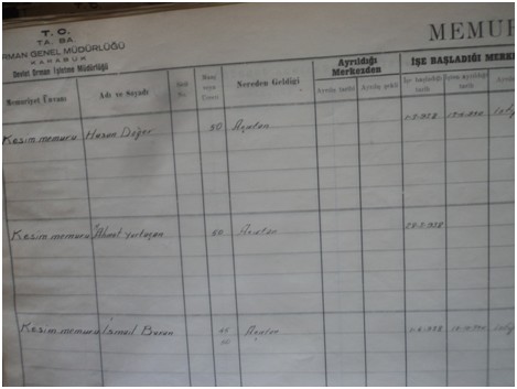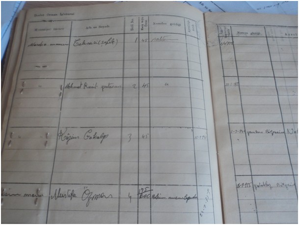 (Büyükbabamın Karabük orman işletmesindeki memur künye defterindeki bilgileri )
