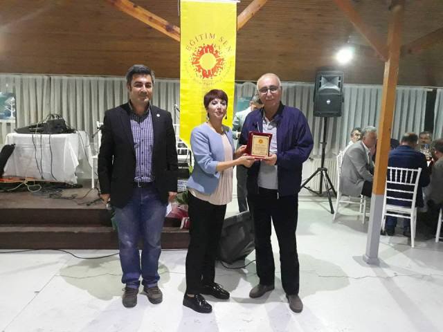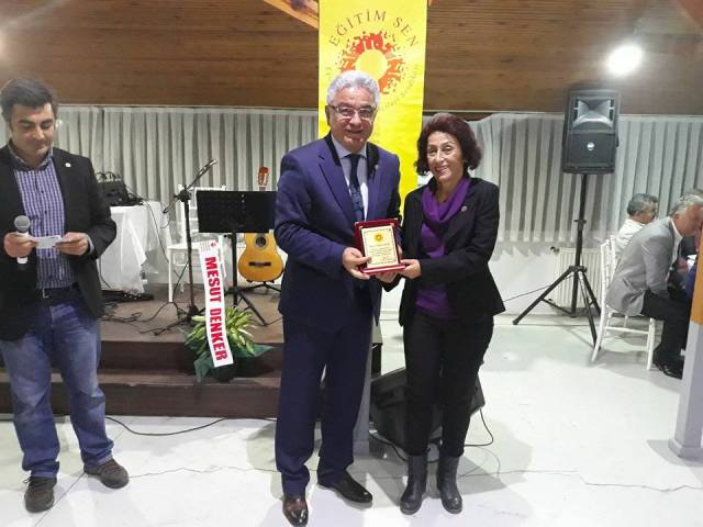 Gecede emekli olan Eğitim Sen üyeleri Nilgün Çelik, Fahri Özkan, Burhan Arslan, Mustafa Kayıkçı, Rahmi Yüksel, Bahri Sarı, Ayla Turhan, Mesut Denker, Mahmut Bulut ve Şevki Saraç’a plaket verildi.