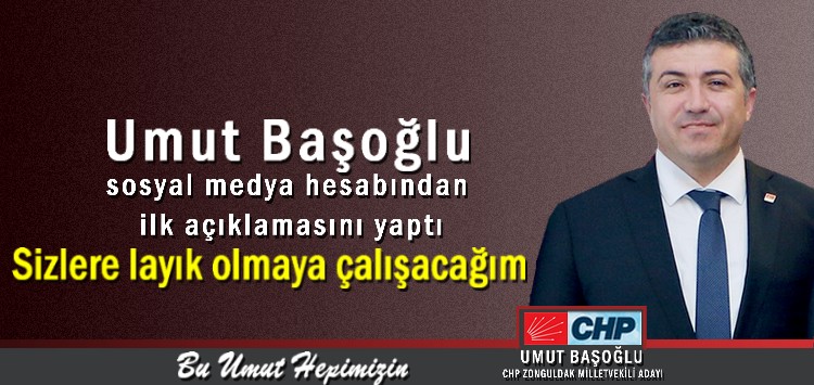 Cumhuriyet Halk Partisi 3. Sıra Zonguldak milletvekili adayı Umut Başoğlu, sosyal medya hesabından ilk açıklamasını yaptı.