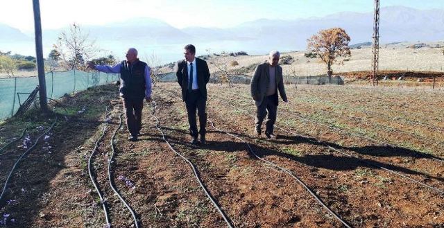 (Eğirdir Kaymakamı Abdullah Akdaş, Sorkuncak’taki safran üretimini inceledi)