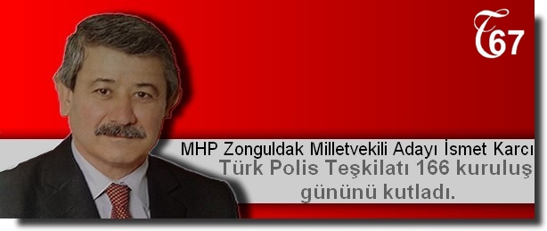 Türk Polis Teşkilatının kuruluşunun 166.yılında, MHP, Zonguldak Milletvekili adayı İsmet Karcı yayınladığı kutlama mesajı ile Türk Polis Teşkilatının 166 kuruluş gününü kutladı.